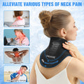 Use it as a neck ice pack or a supportive neck brace. Its adjustable design relieves stiffness, tension, and spinal pressure while providing light stabilization for your jaw and neck.